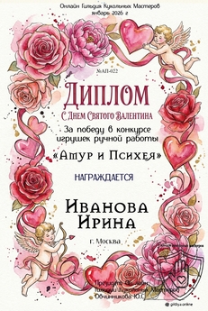 День святого Валентина — это праздник любви, и мы хотим увидеть кукол, вдохновленных одной из самых романтичных историй — мифом об Амуре и Психее. Это может быть одна кукла, воплощающая одного из героев, или пара кукол, отражающая их любовь. ВЫбирайте любую историю любви и воплотите ее в своей работе - Ромео и Джульетта, Орфей и Эвридика, Юнона и Авось, Руслан и Людмила и другие.