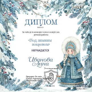 Конкурс "Под зимним покровом" посвящен скрытой красоте зимы: создайте игрушку, укрытую снегом, мехом или сказочным покрывалом. Это может быть сказочная царевна, лесной дух под сугробом или уютная фигурка у окна с видом на метель — передайте ощущение покоя, тайны и внутреннего тепла.